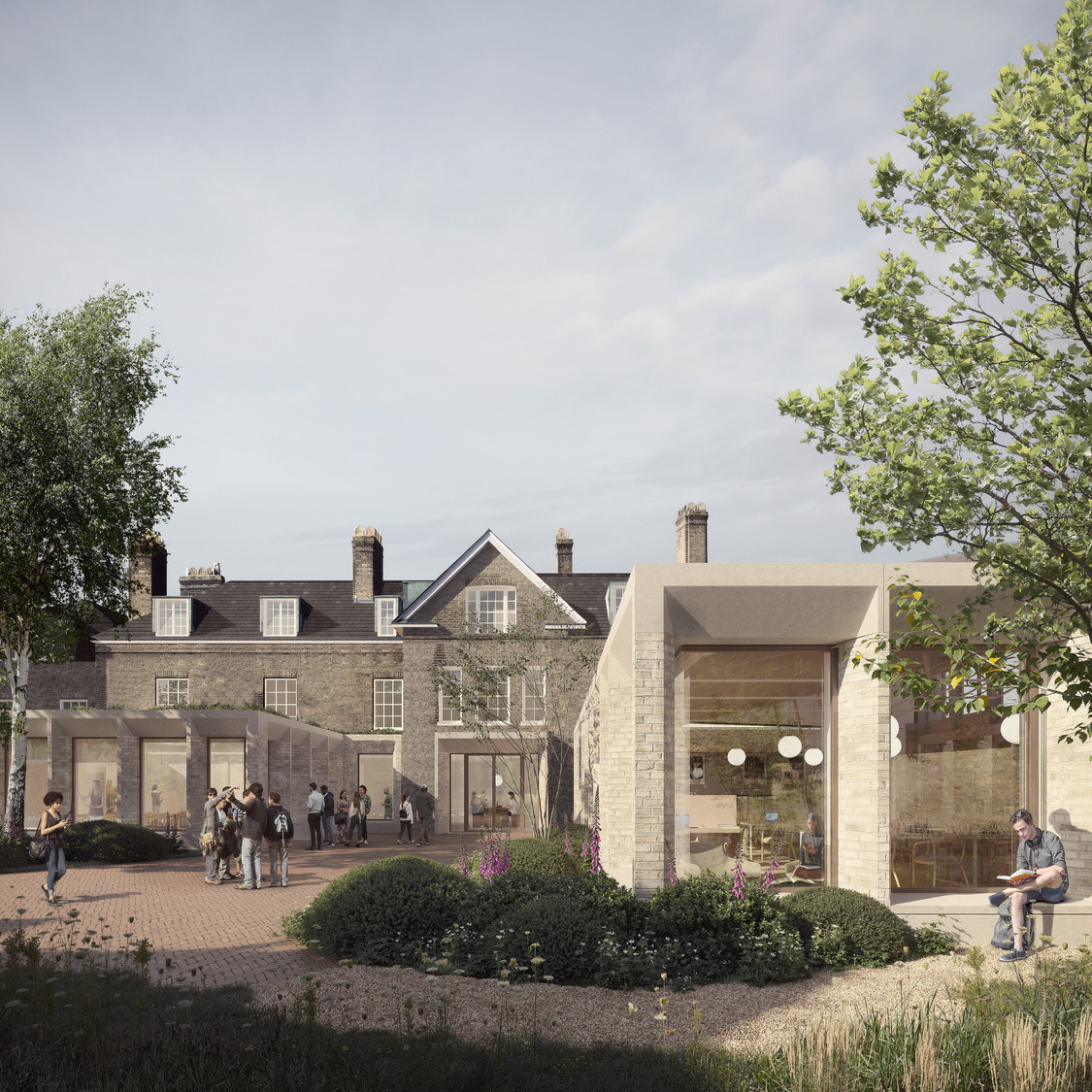 At Queens’ College Cambridge, we are delivering an ambitious Net Zero Carbon masterplan at their Owlstone Croft site, adjacent to ancient water meadows. Alongside 13 new terraced houses with 60 generous study bedrooms, we are retrofitting 90 study bedrooms and associated living facilities at Owlstone House. The deep retrofit of both the Georgian and mid-19th century buildings has been carefully designed to utilise bio-based materials and reduce operational carbon. The buildings have been reconfigured and extended where necessary to provide sensitive and contemporary teaching facilities and communal space in the form of a reading room, seminar space, gym, cafe and enhanced entrances.